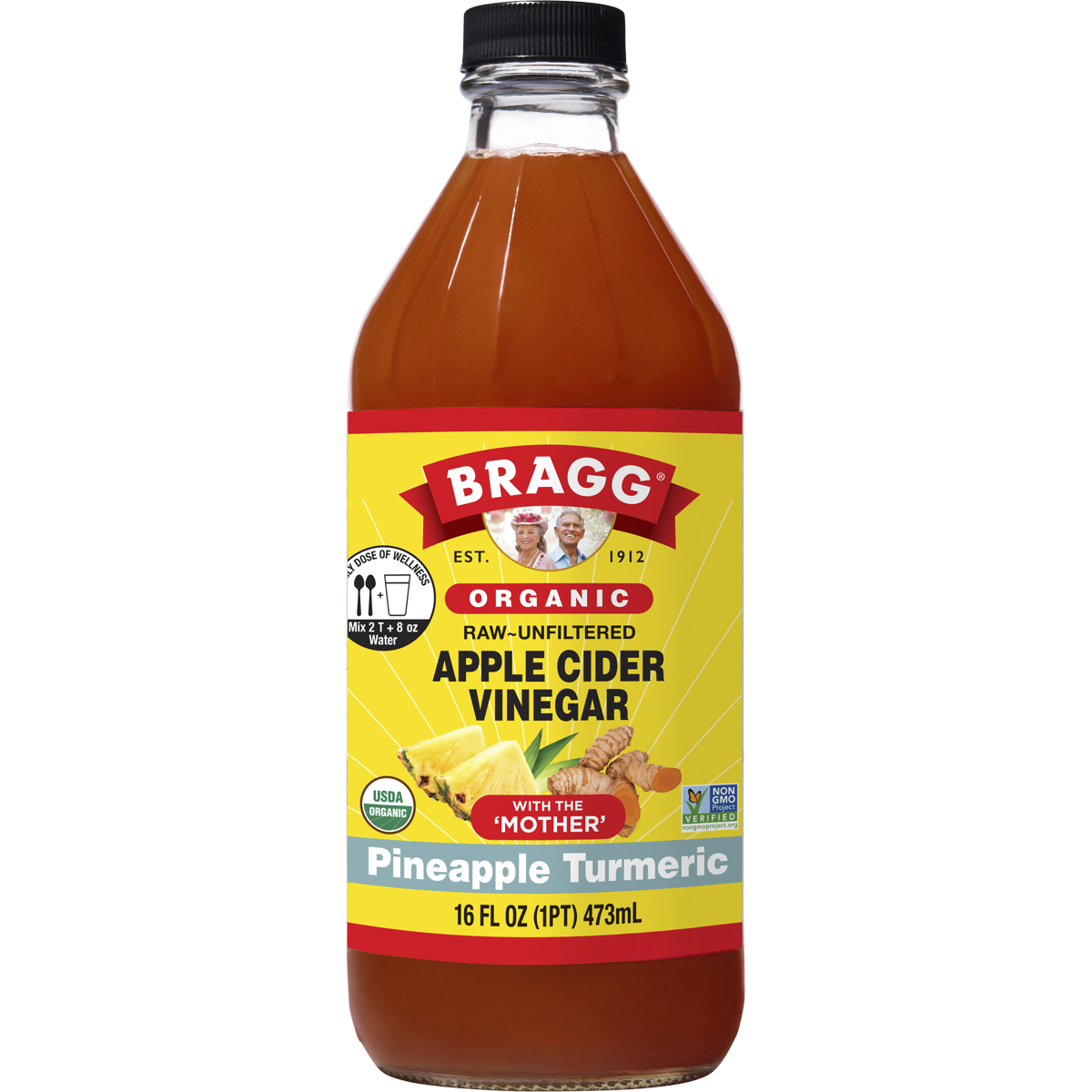 Ingredients: Organic Apple Cider Vinegar, Organic Honey, Water, Organic Pineapple Juice Concentrate (4%), Organic Natural Flavour, Organic Turmeric Extract (1%)