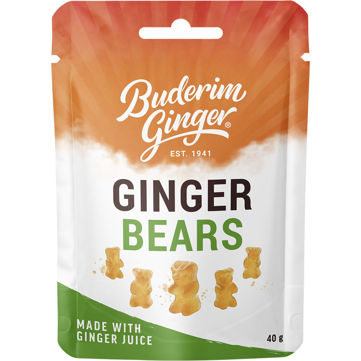 Ingredients: Glucose Syrup (What or Corn), Cane Sugar, Water, Starch (What or Corn), Gelatine (From Beef), Ginger Juice (5%), Invert Syrup, Maize Starch, Lactic Acid, Ginger Oleoresin, Glazing Agent (Coconut Oil, Carnauba Wax – E903).