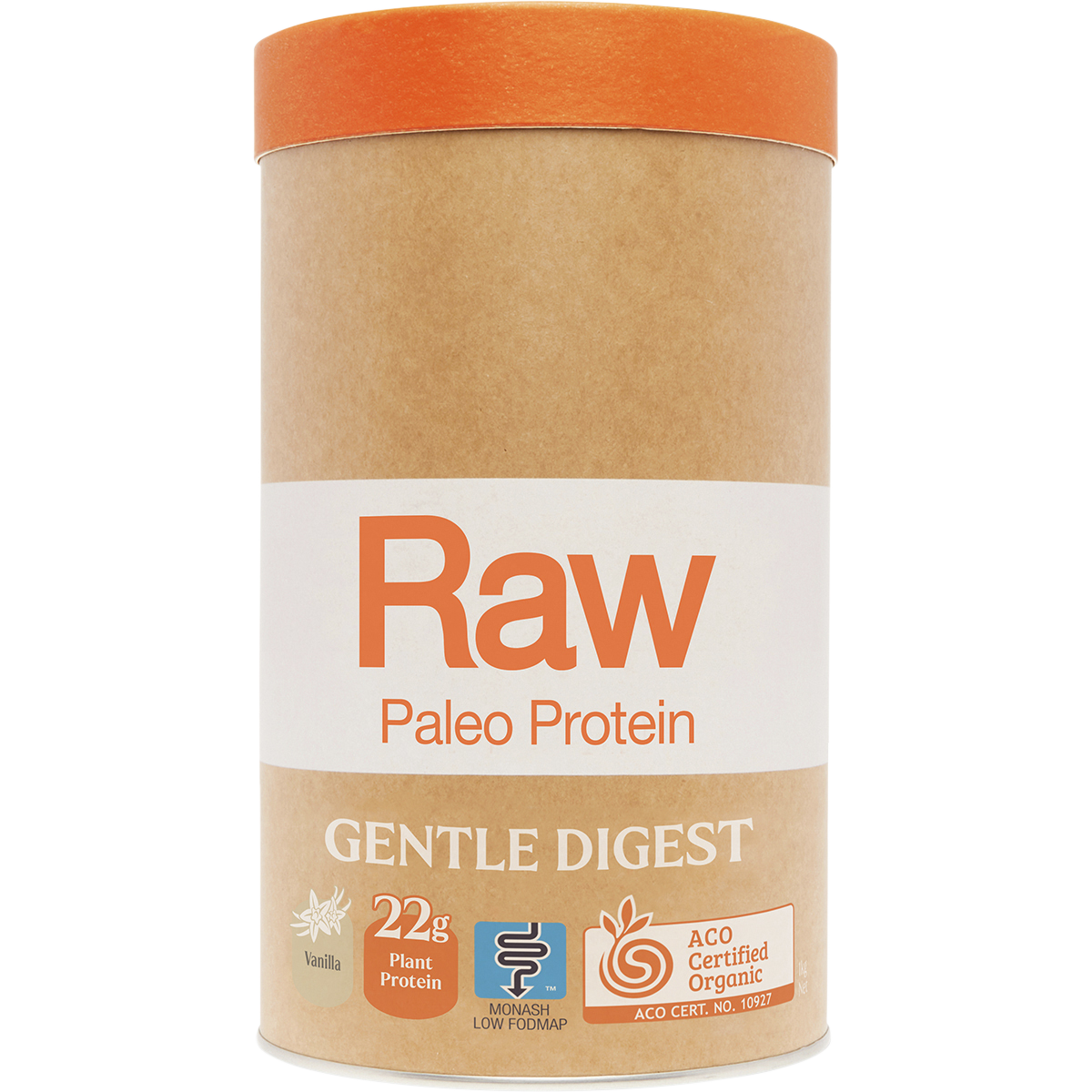 Ingredients: Fermented Paleo Wholefood Protein Blend [Organic Sprouted & Fermented Pea Protein*, Sacha Inchi Protein*, Organic Fermented Paleo Blend* (Spirulina*, Millet*, Quinoa*, Spinach*, Alfalfa Grass*, Sweet Potato*, Pumpkin Seeds*, Sunflower Seeds*, Linseeds*, Chia Seeds*, Molasses*#)], Natural Vanilla Lucuma Blend (Natural Flavours, Lucuma*, Stevia Leaf Extract*), Acacia Fibre*, Digestive Enzyme (Bromelain). *Certified Organic