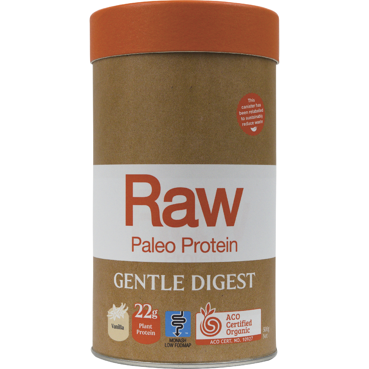 Ingredients: Fermented Paleo Wholefood Protein Blend (Organic Sprouted & Fermented Pea Protein*, Organic Sacha Inchi Protein*, Organic Fermented Paleo Blend*, (Organic Spirulina*, Organic Millet*, Organic Quinoa*, Organic Spinach*, Organic Alfalfa Grass*, Organic Sweet Potato*, Organic Pumpkin Seeds*, Organic Sunflower Seeds*, Organic Linseeds*, Organic Chia Seeds*, Organic Molasses*#), Natural Vanilla Lucuma Blend (Natural Flavours, Organic Lucuma*, Organic Stevia Leaf Extract*), Organic Acacia Fibre*, Digestive Enzyme (Bromelain). *Certified Organic #add for fermentation process (0.02%)