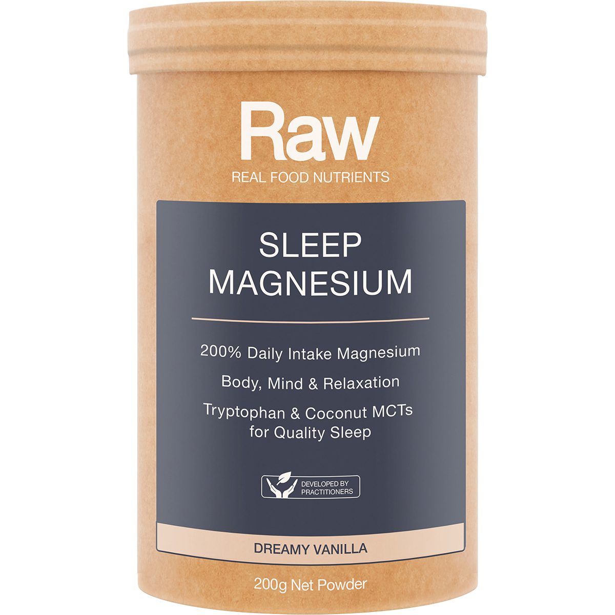 Ingredients: Natural Sleep Blend [Marine Magnesium, Coconut Mcts*, Tryptophan (Plant-Based Amino Acid)], Organic Rice Starch*, Acacia Fibre*, Natural Vanilla Flavour, Stevia Leaf Extract*. *Certified Organic