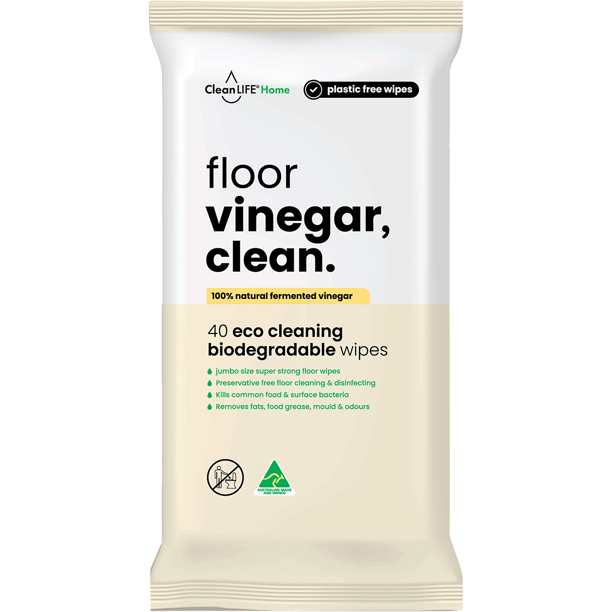Vinegar Clean Floor Plastic Free Wipes (40pk)